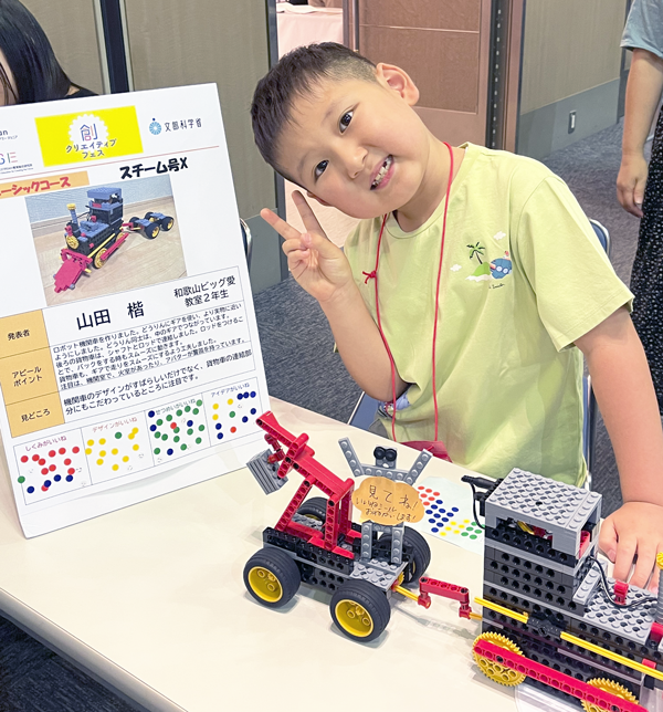 クリエイティブフェス2025 ヒューマンアカデミーロボット教室 クリエイティブフェス2025が開催されました。 和歌山ビッグ愛教室から山田 楷 君が、作品発表と展示をおこないました。 たくさんの皆さんから、いいねシールを貼っていただきました。 発表もはきはきと素晴らしい発表でした! よく頑張りました!